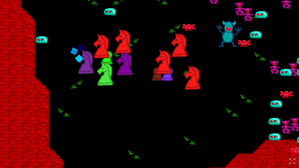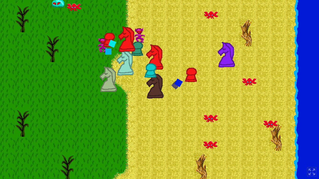 A small game where you hire Pieces and send them on Quests to fight Crabs, Yeti, Goblins, and Slimes.